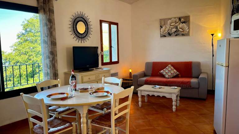 Die Zimmer der Gîtes la fontaine corse vue panoramique Verfügung sind mit einem Sitzbereich, einem Flachbild-TV und einer voll ausgestatteten Küche ausgestattet. Zu den Küchengeräten gehören ein Kühlschrank, Geschirrspüler, Ofen, Mikrowelle, Herdplatte, Kaffeemaschine und Wasserkocher. Zudem ist ein eigenes Badezimmer mit Dusche und Haartrockner vorhanden.