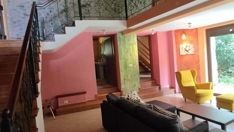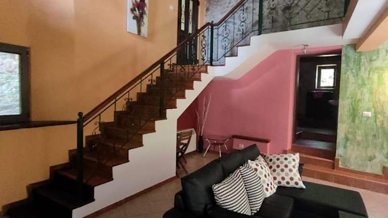 Das Chalet Giusvalla besteht aus 4 separaten Gebäuden und bietet insgesamt 8 Zimmer, 6 Wohnzimmer und 6 Badezimmer. Jedes Zimmer ist gemütlich eingerichtet und verfügt über alle Annehmlichkeiten, die Sie für einen angenehmen Aufenthalt benötigen. Die Badezimmer sind mit Whirlpools ausgestattet, in denen Sie sich nach einem aktiven Tag entspannen können. Es gibt auch 3 Küchen- und Essbereiche, wo Sie Ihre Mahlzeiten zubereiten und genießen können. Der Balkon, die Holzbäckerei, die Feuerstellen, die Veranda und die überdachte Terrasse laden zum Entspannen im Freien ein.