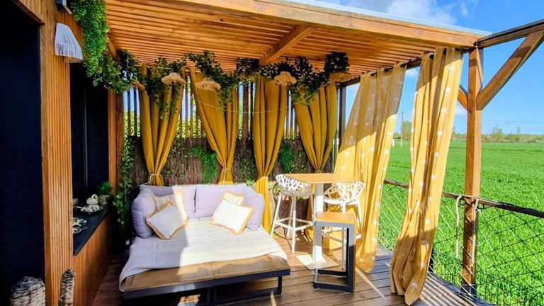 Die Unterkunft Glamour tinyhouse bietet eine überdachte Terrasse und ermöglicht Übernachtungen in einem modernen Ferienhaus. Das Anwesen wird privat geführt und richtet sich an Erwachsene, wobei Junggesellen- oder Junggesellinnenabschiede untersagt sind. Kostenlose Parkmöglichkeiten stehen auf dem Gelände zur Verfügung. Die gesamte Unterkunft ist eine Nichtraucherzone. Tägliche Reinigungsdienste sowie kontaktloser Check-in und Check-out werden angeboten.