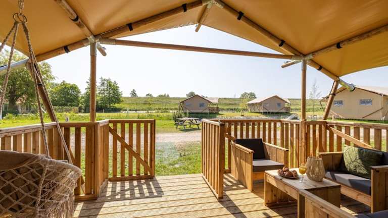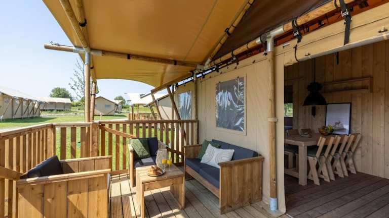 Die Glamping-Zelt-Lodge bietet kostenloses WLAN und Kabel-TV. Die Gäste können auch den Außenpool der Unterkunft nutzen. Die Mindestalter für den Check-in beträgt 18 Jahre, und Haustiere sind auf Anfrage erlaubt.