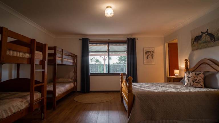 Das Hotel Glen Mervyn Lodge in Mumballup ist ein charmantes, kürzlich renoviertes Bauernhaus, das eine Vielzahl von Zimmern bietet, um den unterschiedlichen Bedürfnissen der Gäste gerecht zu werden. Die Lodge verfügt über eine voll ausgestattete Küche mit einem atemberaubenden Blick auf das Tal sowie ein gemütliches Wohnzimmer mit Kamin und eine Kinderecke. Die geräumigen Schlafzimmer sind mit Queensize-Betten ausgestattet und es gibt zwei Badezimmer, eins davon rollstuhlgerecht. Im Außenbereich können Sie die herrliche Aussicht von einem doppelten Carport und einem Grillplatz mit Esstisch und Sitzbänken genießen. Eine Waschmaschine und ein Trockner stehen Ihnen ebenfalls zur Verfügung.