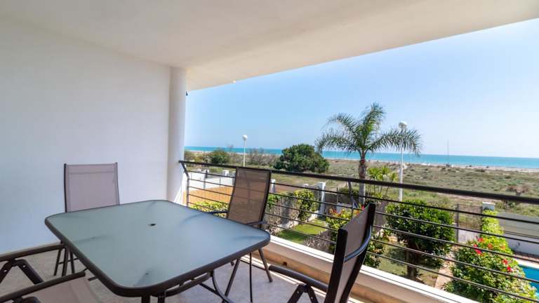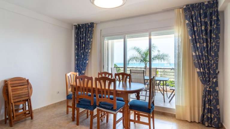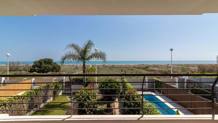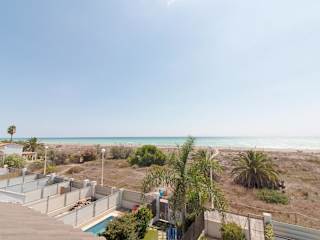 Global Properties, Adosado en primera linea de playa con vistas al mar ist ein Ferienhaus, das einen Balkon, einen eigenen Pool sowie einen Garten umfasst. Die Unterkunft bietet zudem eine Terrasse und ist als Nichtraucherunterkunft konzipiert. Die Check-in-Zeiten sind ab 16:00 bis 00:00 Uhr, während der Check-out bis 11:00 Uhr möglich ist. Das Mindestalter für den Check-in beträgt 18 Jahre.