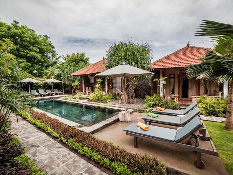 Das Global Royal Pemuteran ist der ideale Ort für einen erholsamen Urlaub in Pemuteran. Mit seinem Außenpool, dem schönen Garten und der Nähe zum Strand bietet es alles, was Sie für einen unvergesslichen Aufenthalt benötigen. Genießen Sie den Komfort der klimatisierten Zimmer mit kostenfreiem WLAN und entspannen Sie im voll ausgestatteten eigenen Bad. Das kontinentale oder asiatische Frühstück sorgt für einen perfekten Start in den Tag. Das Hotel bietet auch eine Kinderbetreuung an, damit Eltern sich entspannen können. Entdecken Sie die nahe gelegenen Sehenswürdigkeiten wie den Pulaki-Tempel und das Krisna Funtastic Land. Der internationale Flughafen Banyuwangi ist nur 60 km entfernt, und das Hotel bietet einen praktischen Flughafentransfer gegen Gebühr.