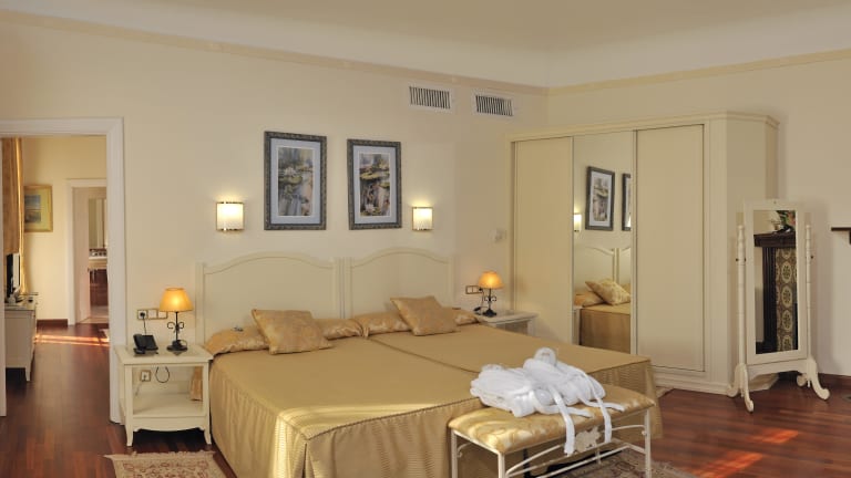 Das Hotel Globales Reina Cristina hat 3 Stockwerke, aufgeteilt in 4 Flügel, sowie einige Zimmer in einer einzigen Etage im Bereich des Außenpools. Das Hotel bietet 168 Zimmer mit folgender Einteilung: - 2 Suiten. - 130 Doppelzimmer (44 mit französischem Bett). - 16 Dreibettzimmer. - 20 Einzelzimmer. Executive room Die Zimmer des Hotels sind im viktorianischen Stil eingerichtet, mit eigenem Bad mit Badewanne oder Dusche, einige haben eine Terrasse, andere einen Balkon, beides mit schönem Blick (Gärten, Hafen, Swimmingpool, Gibraltar). Einzelzimmer Ausstattung: - Klimaanlage. - WLAN-Karte kostenloser Internetanschluss. - Telefon. - Haarföhn. - Safe (gegen Gebühr). - Satellitenfernsehen. - Zimmerservice (gegen Gebühr). - Wäscherei (gegen Gebühr). - Minibar (gegen Gebühr). - Check-in: 14:00 Uhr. Check-out: 12:00 Uhr