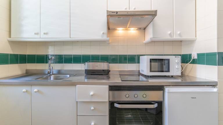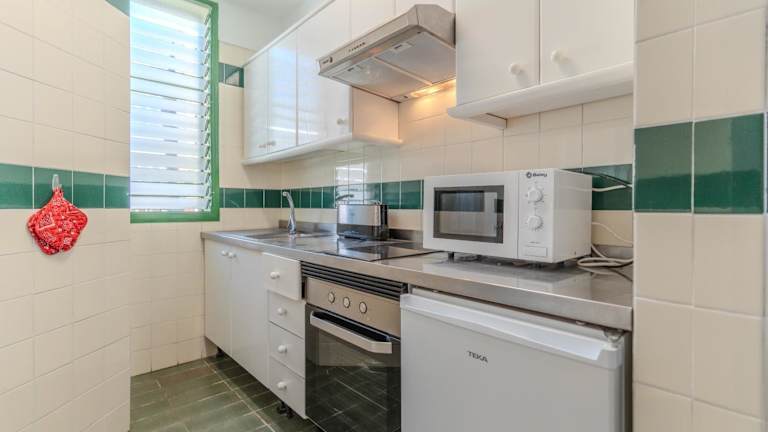 Die Ferienwohnung umfasst 2 Schlafzimmer und 1 Badezimmer. Zur Ausstattung gehören Bettwäsche und Handtücher, ein Flachbild-TV mit Satellitenkanälen, ein Essbereich sowie eine voll ausgestattete Küche. Eine Terrasse mit Blick auf den Pool ist ebenfalls vorhanden.