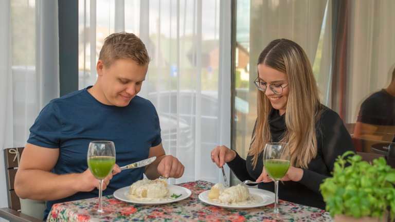 Das Hotel Goda verwöhnt seine Gäste mit einem kostenlosen Frühstücksbuffet, das in der Cafeteria serviert wird. Die Cafeteria ist auf europäische und litauische Gerichte spezialisiert. Sie können Ihre Mahlzeiten auch auf der Terrasse des Hotels genießen und den Blick auf die grüne Umgebung genießen.