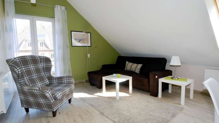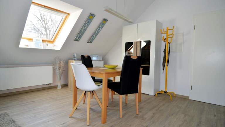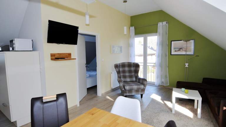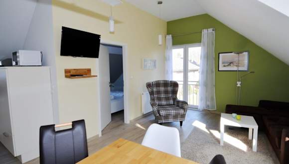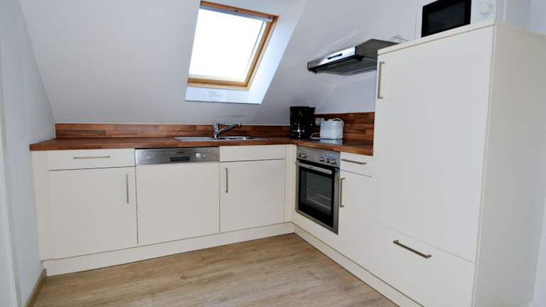 Die Ferienwohnung verfügt über ein Schlafzimmer, eine Küchenausstattung mit Kühlschrank und Geschirrspüler, sowie ein Badezimmer mit Dusche, Haartrockner und Waschmaschine. Unterhaltungsmöglichkeiten bieten ein TV und ein CD-Player. Die Unterkunft ist zudem als Nichtraucherunterkunft ausgewiesen.