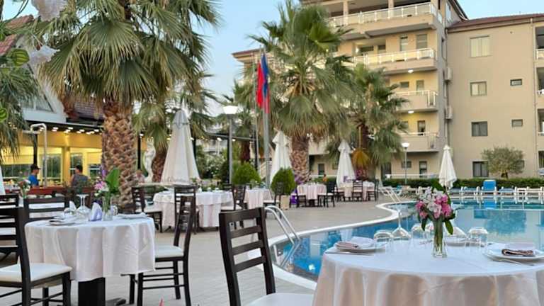 Das Hotel verfügt über ein Restaurant, in dem Sie mediterrane Spezialitäten probieren können. Eine besondere Atmosphäre erwartet Sie auf der Terrasse am Pool, auf der Sie Ihre Mahlzeiten bei schönem Wetter genießen können.