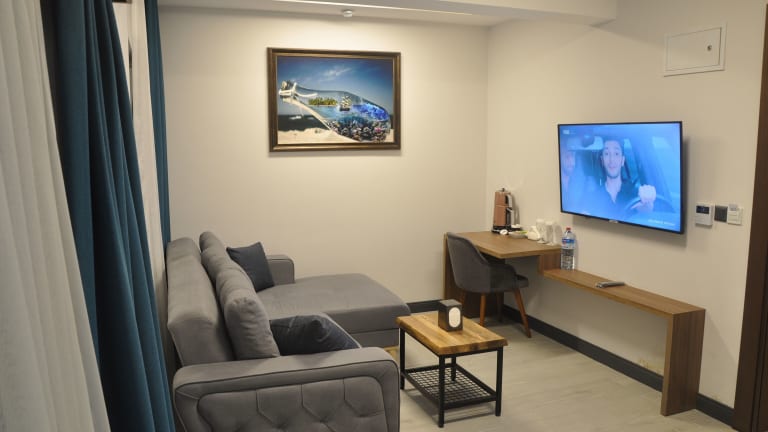 ie klimatisierten Zimmer im GOLAZ SUİT OTEL bieten eine komfortable und gemütliche Atmosphäre. Jedes Zimmer verfügt über eine voll ausgestattete Küche mit einem Essbereich, in dem Sie Ihre Mahlzeiten zubereiten und genießen können. Ein Flachbild-TV sorgt für Unterhaltung und das private Bad ist mit einer Dusche, kostenfreien Pflegeprodukten und einem Haartrockner ausgestattet. Ein Kühlschrank, ein Geschirrspüler, eine Mikrowelle und ein Wasserkocher stehen ebenfalls zur Verfügung, um Ihren Aufenthalt so angenehm wie möglich zu gestalten.