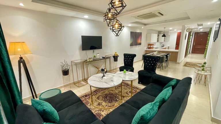 Die Modern Luxury Villa Lahore bietet ein komfortables und stilvolles Apartment mit 3 Schlafzimmern. Jedes Zimmer ist klimatisiert und bietet Ihnen einen angenehmen Rückzugsort nach einem Tag voller Erkundungen. Das geräumige Wohnzimmer lädt zum Entspannen ein und die voll ausgestattete Küche ermöglicht es Ihnen, Ihre eigenen Mahlzeiten zuzubereiten. Die Badezimmer sind modern und mit einem Bidet und einer Dusche ausgestattet. Handtücher und Bettwäsche werden gestellt, um Ihnen einen angenehmen Aufenthalt zu ermöglichen.