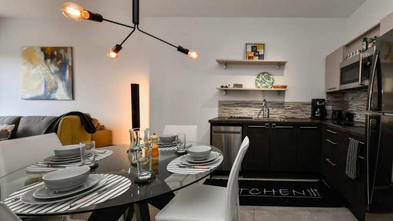 Die Ferienwohnung umfasst 1 Schlafzimmer und ein Wohnzimmer. Die Ausstattung beinhaltet eine voll ausgestattete Küche mit Kühlschrank und Kaffeemaschine sowie ein Badezimmer mit Dusche und Haartrockner. Handtücher und Bettwäsche werden bereitgestellt.