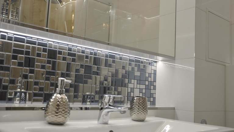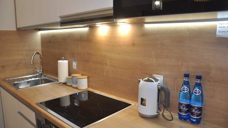 Die Ferienwohnung ist ausgestattet mit einem Wohnzimmer, einem Flachbild-TV mit Kabelkanälen, einer voll ausgestatteten Küche mit Kühlschrank und Mikrowelle sowie einem Badezimmer mit Dusche. Handtücher und Bettwäsche werden bereitgestellt.