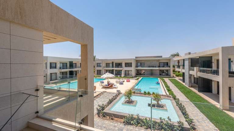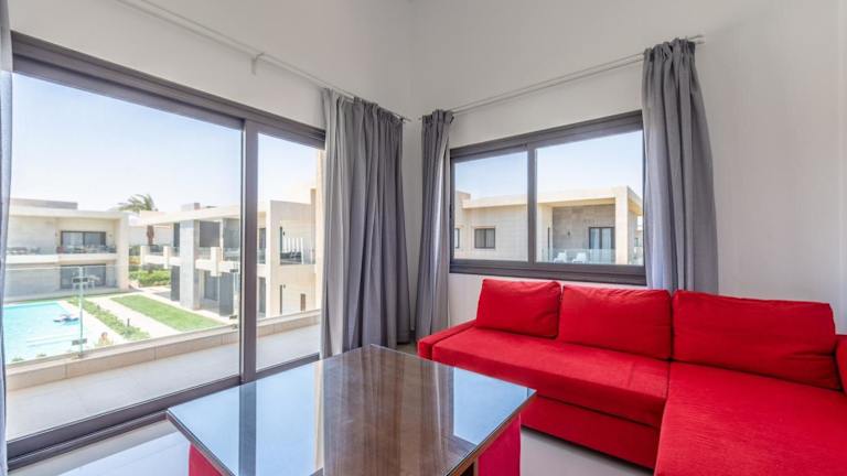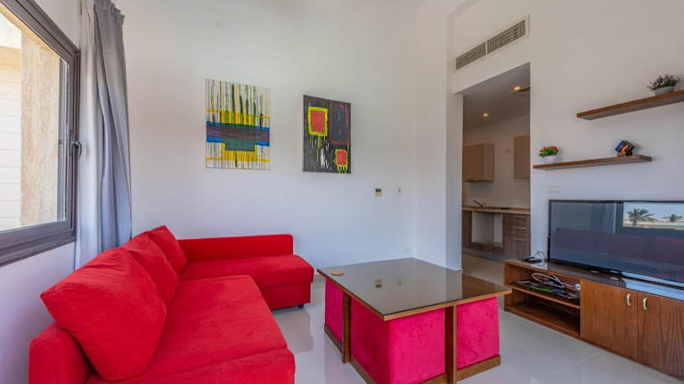 Das Golden Apartments Pool View 1-Bedroom Apartment in G-Cribs, El Gouna bietet ein komfortables und gut ausgestattetes Apartment für Ihren Aufenthalt. Das klimatisierte Apartment verfügt über ein Schlafzimmer, ein Wohnzimmer, einen Essbereich und eine voll ausgestattete Küche mit Kühlschrank. Ein Flachbild-Sat-TV sorgt für Unterhaltung, während Handtücher und Bettwäsche für Ihren Komfort bereitgestellt werden. Genießen Sie den Blick auf den Garten und den Pool von Ihrem eigenen Balkon aus und entspannen Sie auf der Sonnenterrasse.