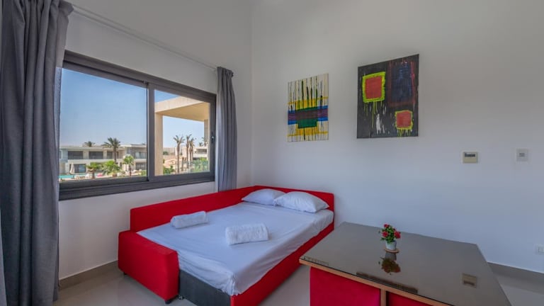 Das Golden Apartments Pool View 1-Bedroom Apartment in G-Cribs, El Gouna liegt in einer ruhigen Gegend und bietet einen wunderschönen Blick auf den Garten. Die Umgebung lädt zu entspannten Spaziergängen und Ausflügen in die Natur ein. Der neue Yachthafen und das Hurghada Grand Aquarium sind ebenfalls leicht zu erreichen und bieten eine Vielzahl von Freizeitmöglichkeiten für die Gäste. Der internationale Flughafen Hurghada ist nur eine kurze Autofahrt entfernt und bietet eine bequeme Anbindung an die Unterkunft.