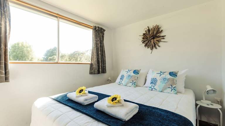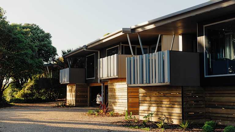 Die Beach Apartments liegen direkt am Strand, umgeben von Pohutakawa-Bäumen. Jedes Apartment verfügt über einen Flur, ein Bad, eine offene Küche, ein Hauptschlafzimmer, ein Zweibettzimmer und eine Terrasse. Die Deluxe Hütte beinhaltet ein Schlafzimmer mit einem Doppelbett, ein kleines Bad mit Dusche und WC, sowie eine Terrasse mit Grillmöglichkeiten. Die Standard Hütte bietet Essgelegenheiten und grundlegende Kochmöglichkeiten, jedoch keine Waschmöglichkeiten in den Zimmern. Bettwäsche wird in den Beach Apartments und Deluxe Hütten gestellt, während Gäste in den Standard Hütten selbst einige Bettwäsche mitbringen müssen.