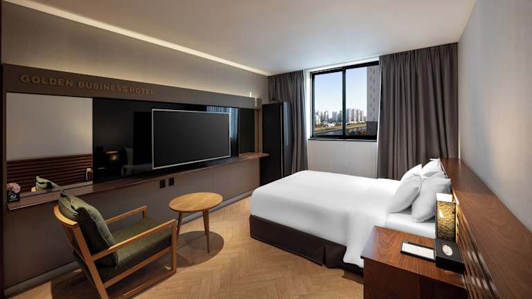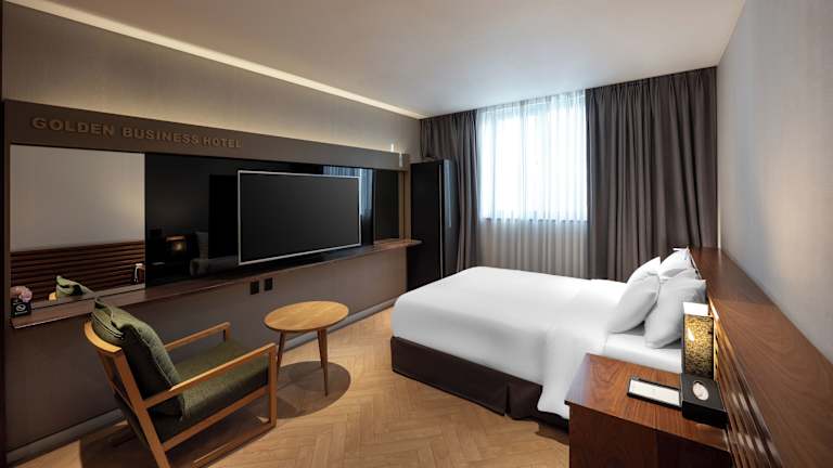 Das Golden Business Hotel bietet komfortable Nichtraucherzimmer und Familienzimmer. Die Zimmer sind modern eingerichtet und verfügen über kostenfreies WLAN. Die Gäste können auch den Whirlpool im Hotel nutzen, um sich zu entspannen und zu erholen. Kostenfreie Privatparkplätze stehen zur Verfügung, ebenso wie ein Businesscenter und eine 24-Stunden-Rezeption.