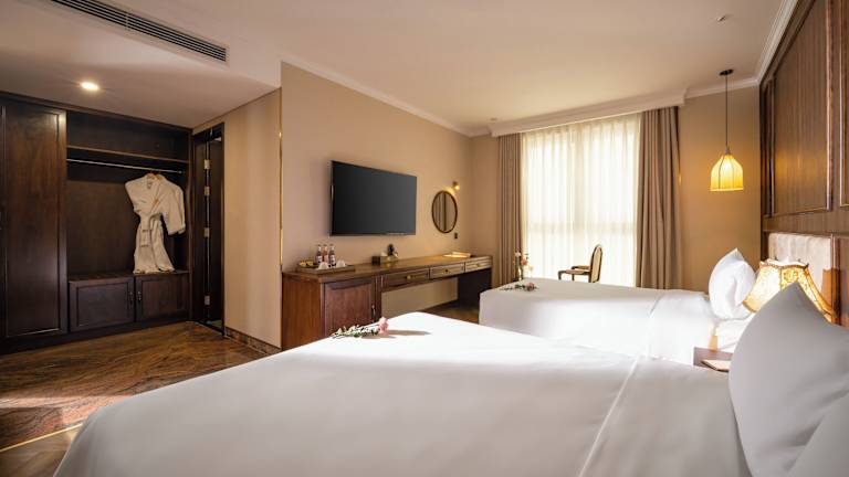 Die Gästezimmer sind mit Klimaanlage, einem Sitzbereich, einem Flachbild-TV mit Kabelkanälen, einem Safe und einem eigenen Badezimmer ausgestattet. Einige Zimmer besitzen einen Balkon oder bieten Stadtblick. Zur Ausstattung gehören zudem Wasserkocher, Bettwäsche und Handtücher.