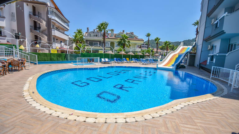 Das familiengeführte Golden Orange Apart Hotel in Marmaris ist der ideale Ort für einen entspannten Urlaub. Die klimatisierten Zimmer mit voll ausgestatteter Küchenzeile und Balkon bieten Ihnen den Komfort eines eigenen Zuhauses. Der Außenpool lädt zum Schwimmen und Sonnenbaden ein. Genießen Sie regionale Spezialitäten im À-la-carte-Restaurant und erfrischende Cocktails an der Poolbar. Kinder können sich auf dem Spielplatz und im Kinderbecken austoben. WLAN ist in allen öffentlichen Bereichen kostenfrei verfügbar. Die Mitarbeiter an der 24-Stunden-Rezeption helfen Ihnen gerne bei der Organisation von Mietwagen oder Leihfahrrädern, um die Umgebung von Marmaris zu erkunden. Das Stadtzentrum mit vielen Einkaufs- und Essensmöglichkeiten erreichen Sie nach nur 500 m.