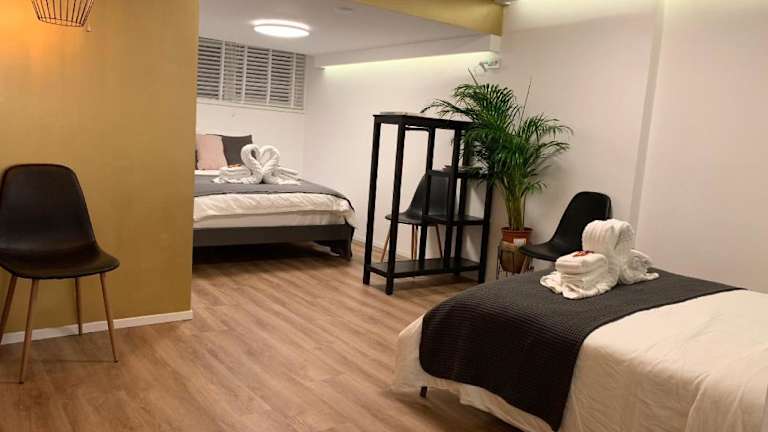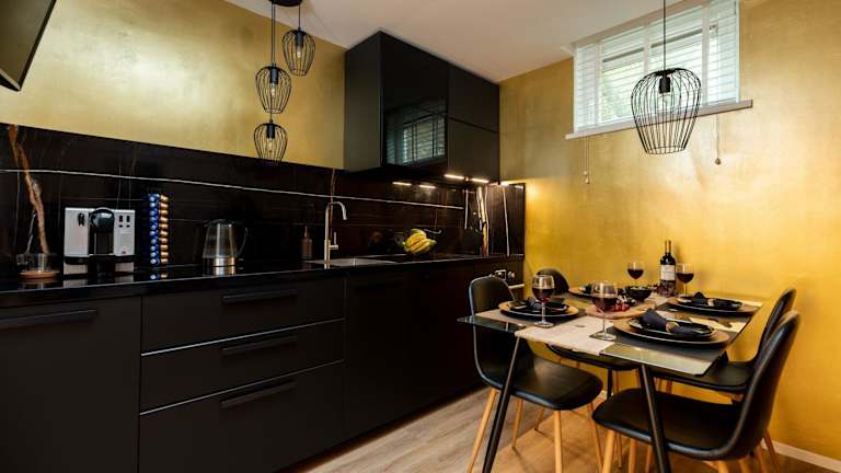 Die Ferienwohnung besteht aus einem Schlafzimmer und verfügt über eine voll ausgestattete Küche, in der sich ein Kühlschrank befindet. Des Weiteren sind ein Badezimmer mit Dusche und Haartrockner vorhanden. Zu den Annehmlichkeiten zählen kostenloses WLAN und ein Flachbild-TV. Die Unterkunft bietet zudem Nichtraucherzimmer und hat Sicherheitsmaßnahmen wie Videoüberwachung in den Gemeinschaftsbereichen.