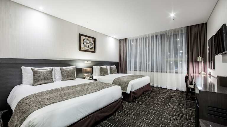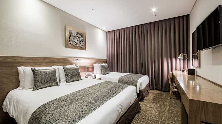 Die 260 elegant eingerichteten Zimmer des Golden Seoul Hotels bieten einen komfortablen Rückzugsort. Jedes Zimmer ist klimatisiert und verfügt über einen Flachbild-TV, einen Wasserkocher und einen Sitzbereich. Das private Badezimmer ist mit einer Warmwasserdusche ausgestattet. WLAN steht in allen Bereichen kostenfrei zur Verfügung. Das Hotel bietet auch eine 24-Stunden-Rezeption, eine große Außenterrasse, ein Businesscenter und kostenfreie Wäschemöglichkeiten.