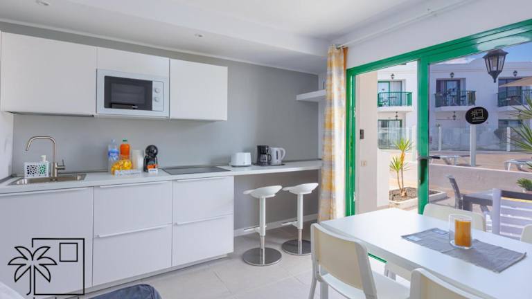 Das Apartment im Paraiso Corralejo iRent Fuerteventura verfügt über 1 Schlafzimmer, ein Wohnzimmer und eine Terrasse mit Poolblick. Es gibt auch eine voll ausgestattete Küche mit Kühlschrank und Mikrowelle sowie ein Badezimmer mit Dusche. Handtücher und Bettwäsche werden gestellt.