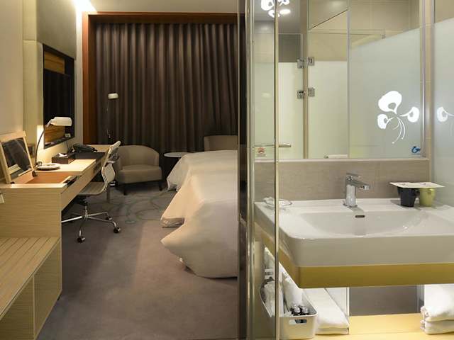 Das Golden Tulip Glory Fine Hotel bietet elegante und komfortable Zimmer mit modernen Annehmlichkeiten. Jedes Zimmer verfügt über einen Flachbild-Sat-TV, Klimaanlage und einen Kühlschrank. Das private Badezimmer ist mit einer Dusche oder einer Badewanne und einem Haartrockner ausgestattet.