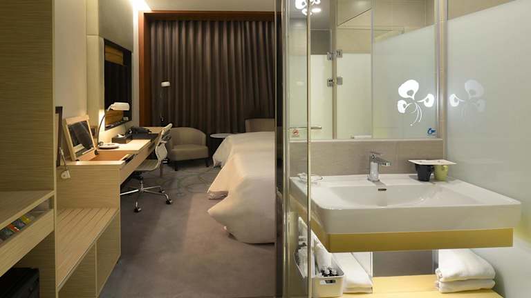 Das Golden Tulip Glory Fine Hotel in Tainan bietet elegante Unterkünfte mit kostenlosem WLAN und einer günstigen Lage in der Nähe der Kunst- und Bar-Gegend. Das Hotel verfügt über praktische Gästedienstleistungen, eine Touristeninformation, Geschäftseinrichtungen und ein hoteleigenes Restaurant. Es ist nur 15 Gehminuten vom Tainan Flower Night Market und eine 10-minütige Taxifahrt vom Tainan Bahnhof entfernt. Die An Pin Gegend erreichen Sie in 20 Autominuten. Die Zimmer sind mit einem Flachbild-Sat-TV, Klimaanlage und einem Kühlschrank ausgestattet. Das private Badezimmer verfügt über eine Dusche oder eine Badewanne sowie einen Haartrockner. Auf Anfrage können Sie Touren arrangieren, ein Auto mieten oder Fahrräder ausleihen. Wäsche-, Reinigungs- und Bügelservice werden ebenfalls angeboten. In der näheren Umgebung finden Sie lokale Restaurants, die bequem zu Fuß erreichbar sind.