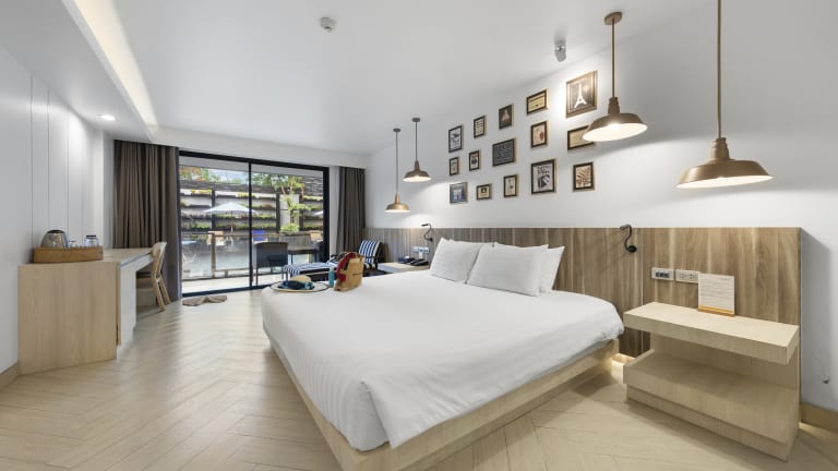 Die Zimmer sind mit einer Klimaanlage ausgestattet und verfügen über Balkon oder Terrasse, teilweise mit Meerblick. Zur Grundausstattung gehören ein Doppelbett bzw. Queensize- oder Kingsize-Bett, Safe, Minibar, Schreibtisch und eine Tee-/Kaffeemaschine. Die Badezimmer sind mit Dusche und Badewanne ausgestattet und bieten Haartrockner sowie Bademäntel. Darüber hinaus sind Nichtraucher- und Familienzimmer verfügbar.