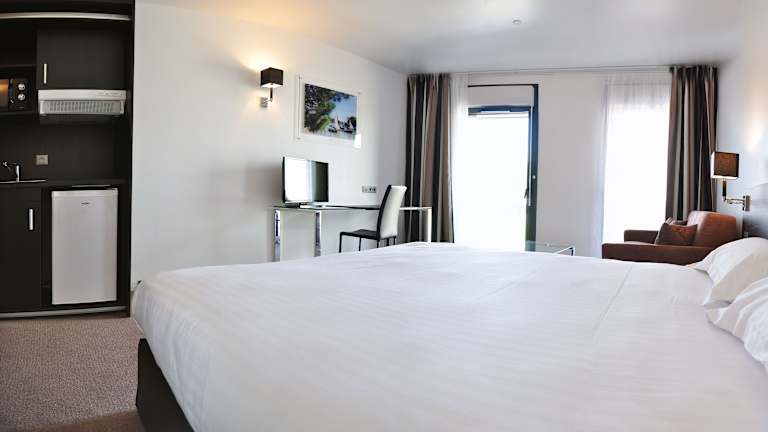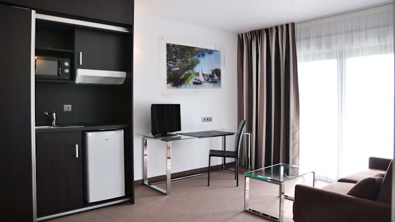 Golden Tulip Pornic Suites - Appart Hotel bietet eine einladende Atmosphäre mit verschiedenen Einrichtungen, die auf die Bedürfnisse der Gäste ausgerichtet sind. Es gibt einen Garten, einen 24-Stunden-Sicherheitsdienst, einen Zimmerservice und zahlreiche behindertengerechte Einrichtungen. Außerdem stehen ein Business-Center und ein Konferenzraum zur Verfügung. Das Hotel verfügt über insgesamt 87 Zimmer, verteilt auf 3 Stockwerke, und ist seit 2016 in Betrieb.