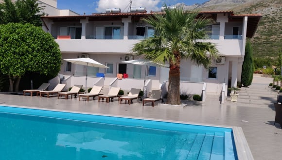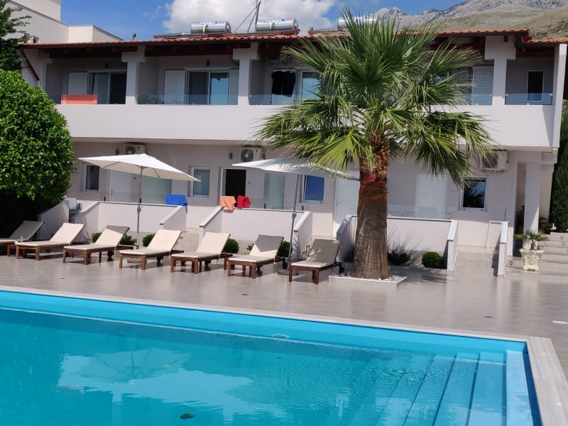 Die Golden View Residence liegt in Dhërmi und bietet eine fantastische Lage mit Blick auf das Meer. Die Umgebung lädt zu Aktivitäten wie Radfahren und Wandern ein. Saranda ist 67 km entfernt und Vlora erreichen Sie nach 58 km.