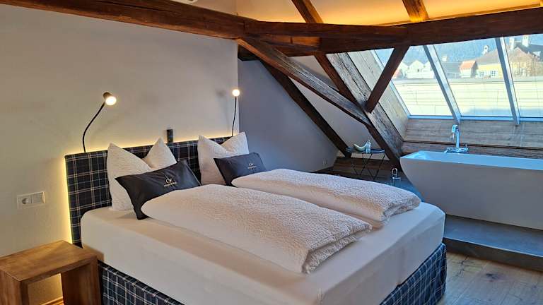Stilvoll wohnen im Boutiquehotel Goldener Engl Die Zimmer und Suiten im Goldenen Engl verbinden historischen Charme mit modernem Komfort. Vom kompakten Einzelzimmer über gemütliche Doppelzimmer bis zu großzügigen Suiten mit Dachschrägen, freistehender Badewanne oder privater Sauna – jedes Zimmer ist individuell gestaltet, ausgestattet mit Boxspringbetten, Smart-TV, Minibar & Safe, hochwertigem Parkettboden, Klimaanlage und kostenlosem W-LAN. Ein Ort für entspannte Nächte und erinnerbare Momente mitten in Hall in Tirol.