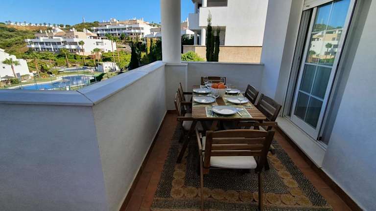Golf & Beach La Alcaidesa Terrace bietet eine Unterkunft mit einem saisonalen Außenpool, einem Garten und einer Terrasse. Die Ferienwohnung ist klimatisiert und ermöglicht einen Blick auf den Pool.