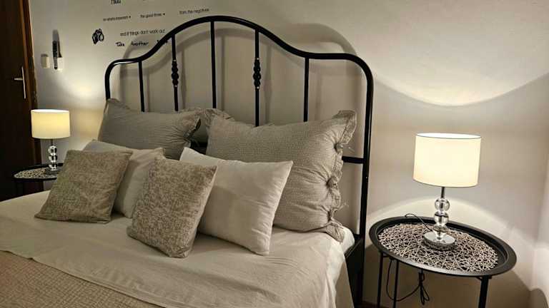 Die Unterkunft verfügt über 1 Schlafzimmer mit Klimaanlage, einen Essbereich und eine voll ausgestattete Küche, die mit einer Herdplatte ausgestattet ist.