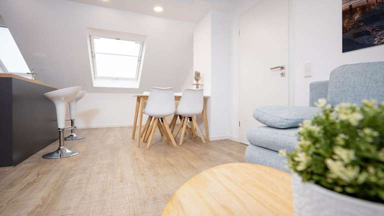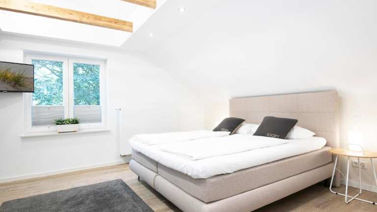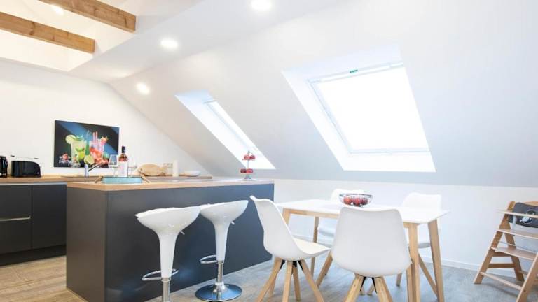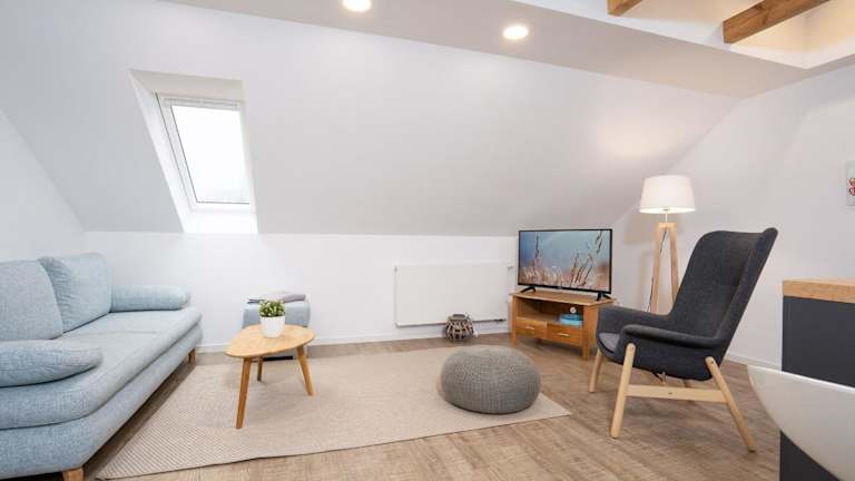 Die Ferienwohnung verfügt über ein Schlafzimmer, einen Fernseher, eine gut ausgestattete Küche mit Kühlschrank und Geschirrspüler sowie ein Badezimmer mit Dusche. Es wird ein optionales Bettwäschepaket gegen Gebühr angeboten. Die Gäste können auch eigene Handtücher und Bettwäsche mitbringen.