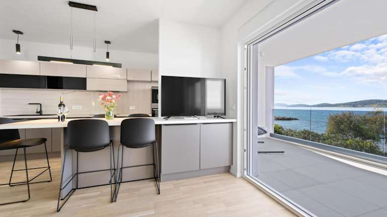 Gorgeous Apartment In Vodice With Wifi bietet Meerblick und ist eine klimatisierte Ferienwohnung mit zwei Schlafzimmern. Die Ausstattung umfasst einen Flachbild-TV und eine voll ausgestattete Küche mit Kühlschrank und Geschirrspüler. Die Unterkunft stellt zudem einen kostenlosen Privatparkplatz und WLAN zur Verfügung. Es handelt sich um eine Nichtraucherunterkunft, in der keine Feierlichkeiten wie Junggesellenabschiede erlaubt sind. Es gibt eine Altersbeschränkung für den Check-in (Mindestalter 18 Jahre).