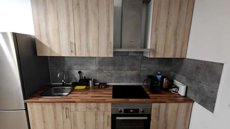 Die Ferienwohnung bietet eine Klimaanlage, zwei Schlafzimmer, ein Wohnzimmer sowie eine voll ausgestattete Küche mit Kühlschrank und Kaffeemaschine. Das Badezimmer ist mit einer Dusche und kostenlosen Pflegeprodukten ausgestattet. Handtücher und Bettwäsche werden bereitgestellt.