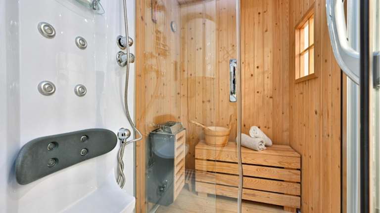 Zu den Sport- und Freizeitmöglichkeiten zählen Angeln, ein Dampfbad und Spielgeräte für Kinder im Freien.