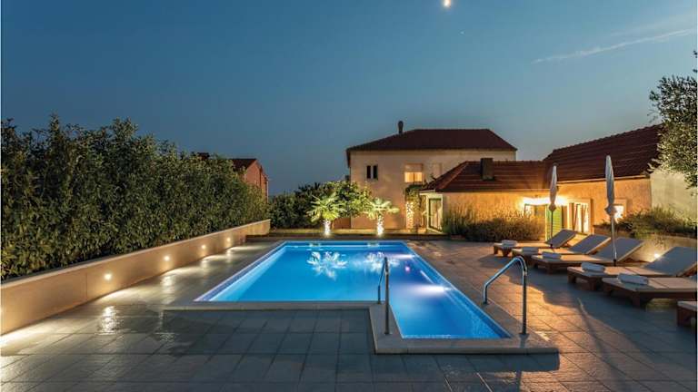 Gorgeous Home In Split ist eine Unterkunft mit eigenem Pool und Meerblick. Es handelt sich um ein klimatisiertes Ferienhaus, das über 5 Schlafzimmer, ein Wohnzimmer, eine voll ausgestattete Küche sowie 4 Badezimmer verfügt. Die Unterkunft bietet zudem einen Whirlpool und einen Außenpool.