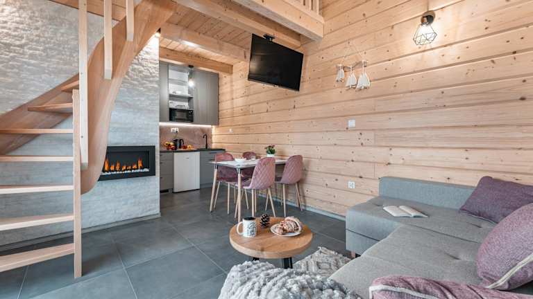 Górski Horyzont - domki nad jeziorem z widokiem na Tatry bietet eine kinderfreundliche Umgebung mit kostenlosem WLAN, einem Kinderspielplatz, einem Garten und kostenfreien Privatparkplätzen. Es umfasst eine Terrasse mit Blick auf die Berge, die zu entspannenden Stunden im Freien einlädt.