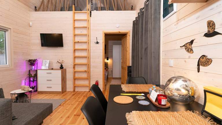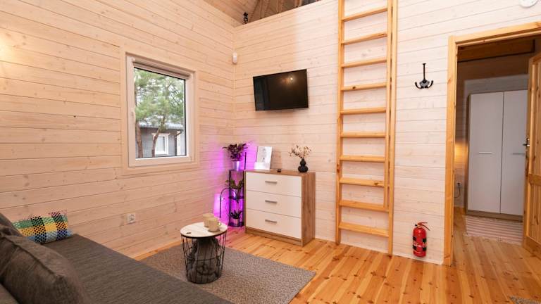 Die klimatisierten Wohneinheiten sind mit Parkettboden ausgestattet und umfassen ein eigenes Badezimmer, einen Flachbild-TV, einen Kleiderschrank sowie eine Küchenzeile. Eine Terrasse mit Gartenblick ist ebenfalls vorhanden. Zur Ausstattung gehören ein Kühlschrank, eine Herdplatte und ein Wasserkocher.