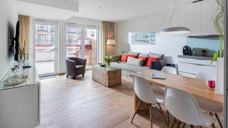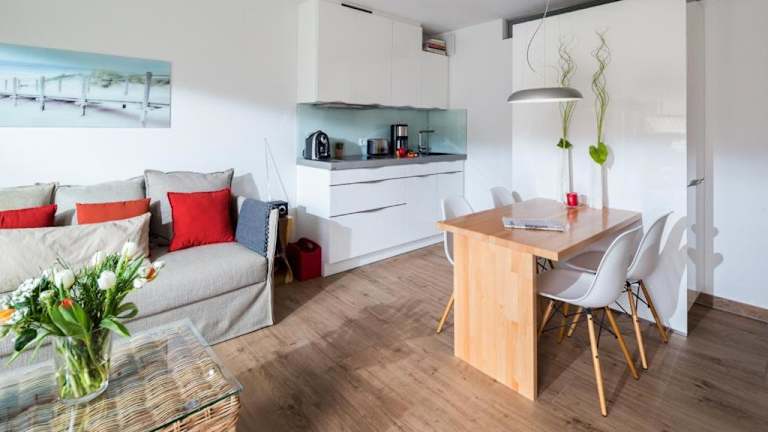 Die Apartments im Gosch sunside Hotel bieten Ihnen ein komfortables und gemütliches Zuhause während Ihres Aufenthalts auf Norderney. Das Apartment verfügt über ein Schlafzimmer und ein Wohnzimmer mit einem TV und einem DVD-Player. Die voll ausgestattete Küche mit einem Geschirrspüler ermöglicht es Ihnen, Ihre eigenen Mahlzeiten zuzubereiten und sich wie zu Hause zu fühlen. Kostenloses WLAN ist in allen Bereichen des Hotels verfügbar, damit Sie mit Ihren Lieben in Kontakt bleiben können.