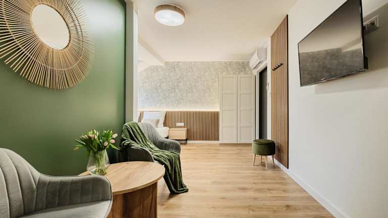 Das Gosciniec Zacisze liegt in Dąbie, nur 13 km von Termy Uniejów entfernt. Die Region Großpolen bietet eine malerische Landschaft und viele Möglichkeiten für Aktivitäten im Freien. In der Nähe gibt es auch andere Sehenswürdigkeiten und Attraktionen, die es zu erkunden gilt. Der nächste Flughafen, der Flughafen Lodz Wladyslaw Reymont, ist etwa 70 km entfernt.