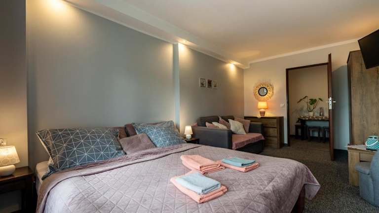 Im Gościnny Dom stehen gut ausgestattete Zimmer zur Verfügung. Jedes Zimmer verfügt über einen Flachbild-Kabel-TV und ein eigenes Badezimmer mit Dusche. Eine voll ausgestattete Küchenzeile mit Kühlschrank ist ebenfalls vorhanden. Einige Zimmer bieten zudem einen gemütlichen Sitzbereich und einen Balkon.