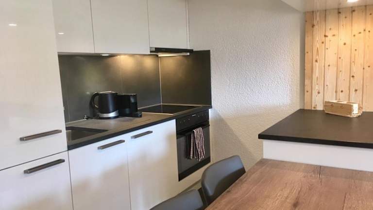 Die Ferienwohnung ist mit einem Wohnzimmer sowie einer voll ausgestatteten Küche ausgestattet, die einen Kühlschrank und einen Ofen umfasst. Handtücher und Bettwäsche werden zur Verfügung gestellt.