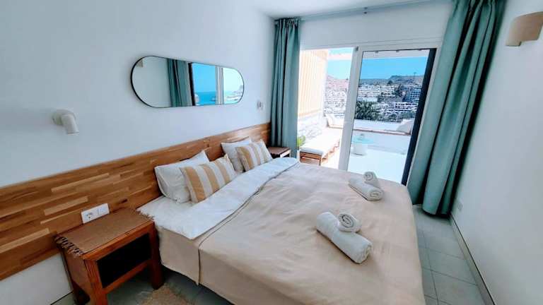 Gran Ocean View verfügt über einen Außenpool, einen Garten und einen direkten Zugang zu einem eigenen Strandbereich. Die Unterkunft kombiniert moderne Annehmlichkeiten mit einem ansprechenden Ambiente und bietet kostenlosen WLAN-Zugang sowie Stadtblick.