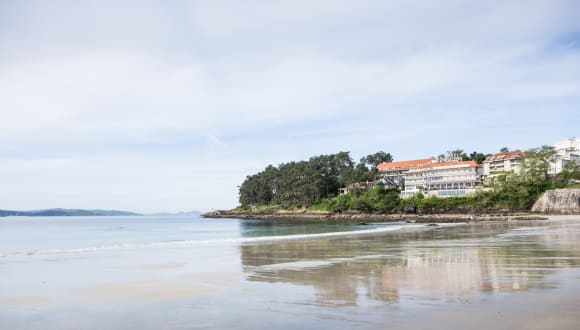 Das Gran Talaso Hotel Sanxenxo liegt nur 5 Gehminuten von der wunderschönen Bucht von Sanxenxo entfernt. Es befindet sich in der Nähe des kleinen Ortes Sanxenxo in der galizischen Provinz Pontevedra, im Nordwesten Spaniens. Die Umgebung bietet einen geschützten Sandstrand und eine Vielzahl von Einkaufs- und Unterhaltungsmöglichkeiten. Die Stadt Pontevedra ist etwa 18 km entfernt und der Flughafen Vigo ist in ca. 45 Minuten mit dem Auto erreichbar.