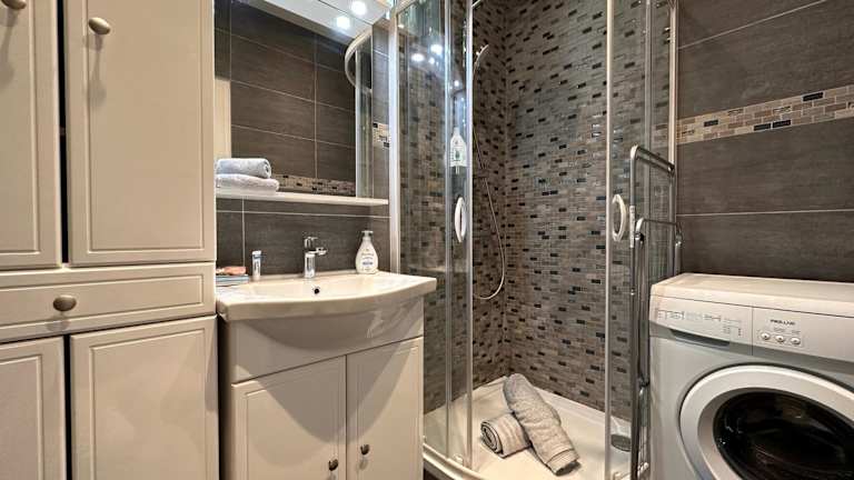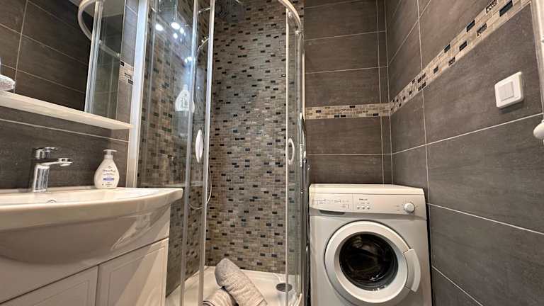 Die Ferienwohnung besteht aus einem Schlafzimmer, einem Wohnzimmer und einer voll ausgestatteten Küche, die mit einem Kühlschrank und einer Kaffeemaschine ausgestattet ist. Darüber hinaus gehört ein Badezimmer mit einer Dusche und kostenlosen Pflegeprodukten zur Ausstattung. Handtücher und Bettwäsche werden zur Verfügung gestellt.