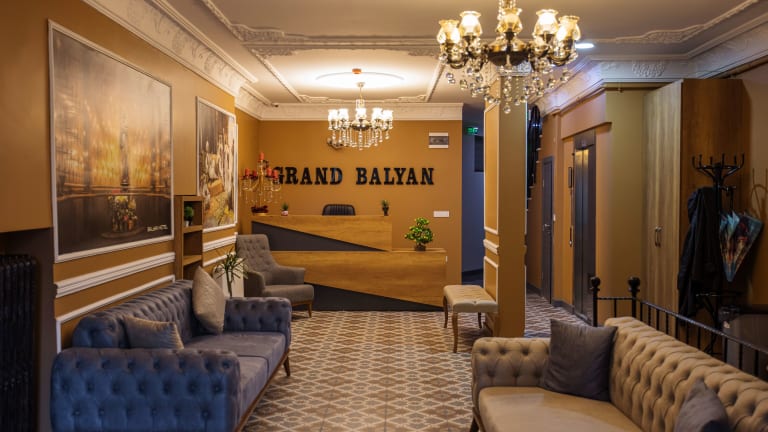 Erleben Sie einen unvergesslichen Aufenthalt im Grand Balyan Hotel & Restaurant in Istanbul. Das Hotel bietet eine erstklassige Lage in der Nähe vieler beliebter Sehenswürdigkeiten und verfügt über komfortable Zimmer mit modernen Annehmlichkeiten. Genießen Sie das Restaurant, das eine Vielzahl von kulinarischen Optionen bietet, darunter amerikanische, britische und französische Küche. Das freundliche Personal und die 24-Stunden-Rezeption stehen Ihnen jederzeit zur Verfügung, um Ihnen einen angenehmen Aufenthalt zu ermöglichen.