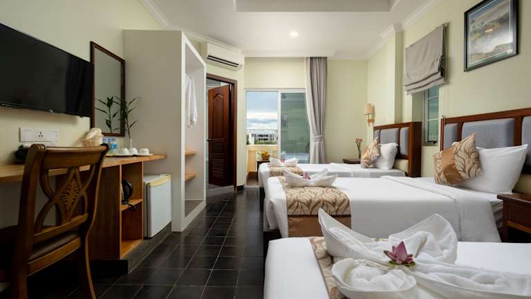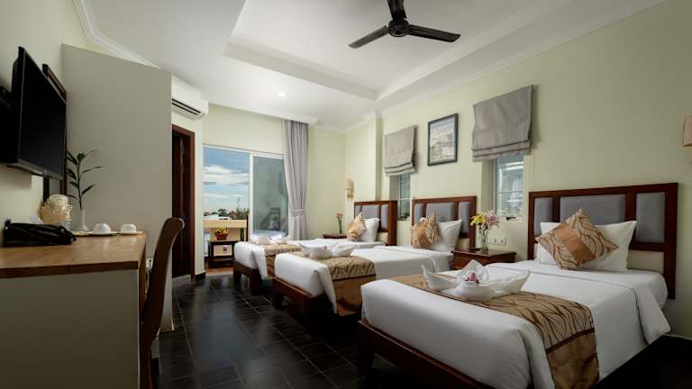 Die klimatisierten Zimmer im Grand Bayon Siem Reap Hotel sind modern und komfortabel eingerichtet. Jedes Zimmer verfügt über einen Flachbild-Kabel-TV, einen Safe und ein eigenes Badezimmer mit einer Warmwasserdusche, einem Haartrockner und kostenfreien Pflegeprodukten. Einige Zimmer bieten auch einen separaten Sitzbereich, der zum Entspannen einlädt. Das Tee- und Kaffeezubehör wird täglich aufgefüllt, um Ihren Komfort zu gewährleisten.
