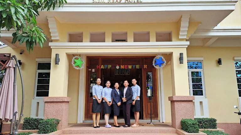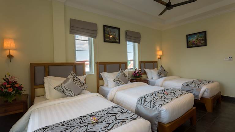 Das Grand Bayon Siem Reap Hotel in Siem Reap ist die perfekte Wahl für Reisende, die eine erstklassige Unterkunft in der Nähe der Pub Street und des Alten Marktes suchen. Genießen Sie den Außenpool, die Sonnenterrasse und das kostenfreie WLAN. Die klimatisierten Zimmer bieten modernen Komfort und sind mit einem Flachbild-Kabel-TV und einem Safe ausgestattet. Das freundliche Personal steht Ihnen rund um die Uhr zur Verfügung und hilft Ihnen gerne bei der Organisation von Ausflügen. Probieren Sie im hoteleigenen Restaurant authentische kambodschanische Gerichte sowie asiatische und internationale Spezialitäten.